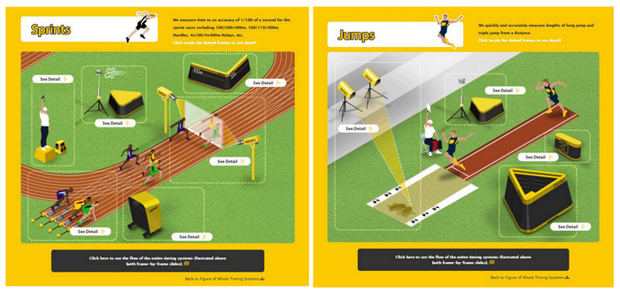 The Seiko official website introduces the timing and measurement systems used specifically for sprint, jump, and throw events in an animated, easy-to-understand way. Please check them out from the following URL.