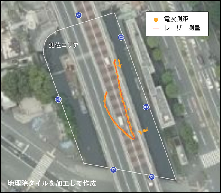 東京都千代田区大手町2丁目~中央区八重洲1丁目の首都高速道路高架橋下で、GNSSが受信できない施工環境において、Chrono Locate™による試験測位を実施し、適用可能性を検証しました。
