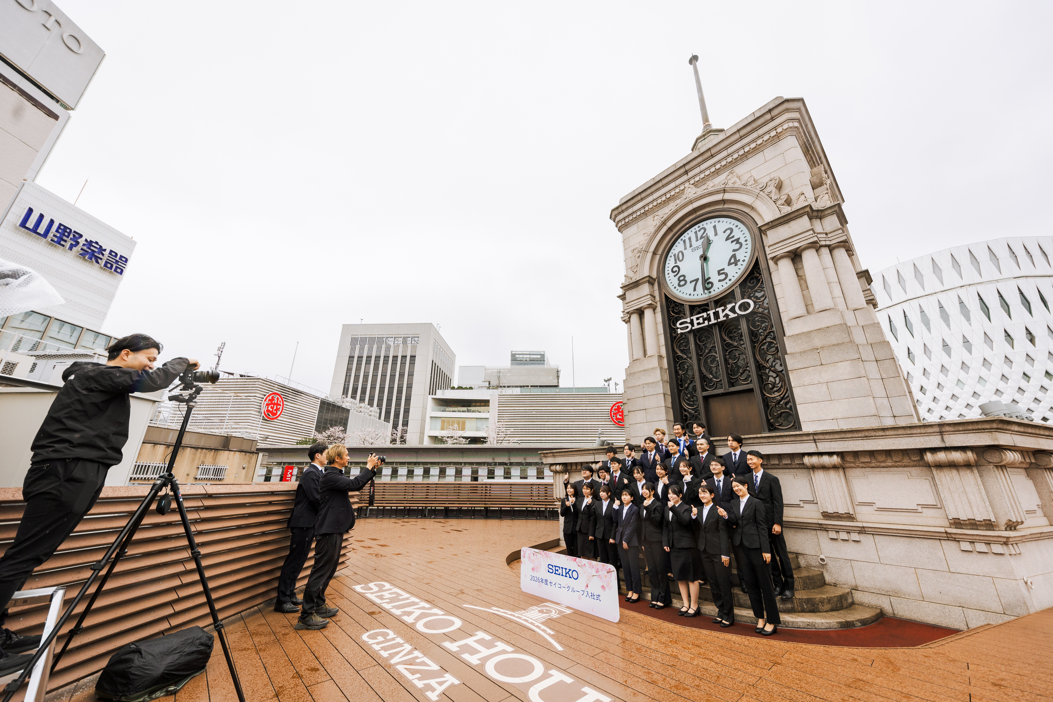また、入社式終了後には、銀座四丁目のSEIKO HOUSE時計塔に移動し記念撮影を実施。