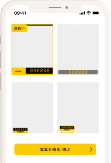 4種類のフレームデザインからお選びいただけます。タイムや日付を自由に入力してください。